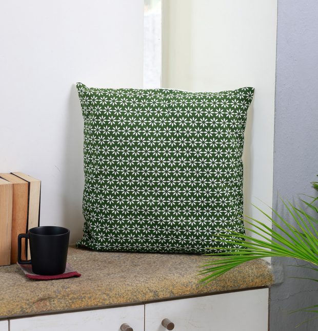 Be the first to review “Flora Printed Cushion cover Green/White 18″x18″”