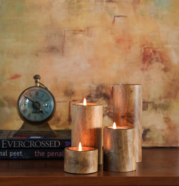 Be the first to review “Handcrafted Wooden Round Tea Light Candle Holder – Set of 4”
