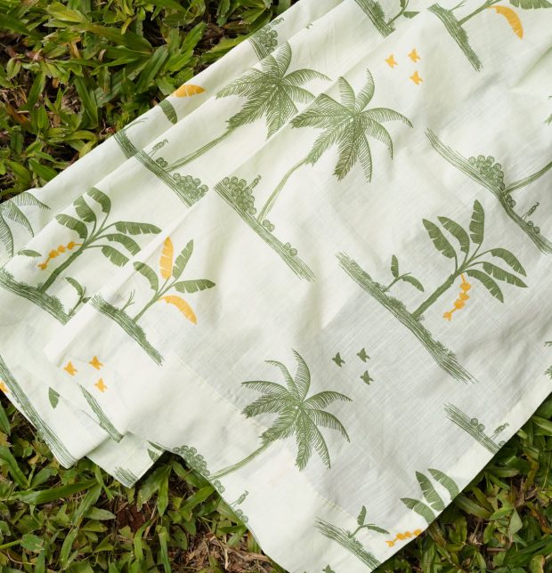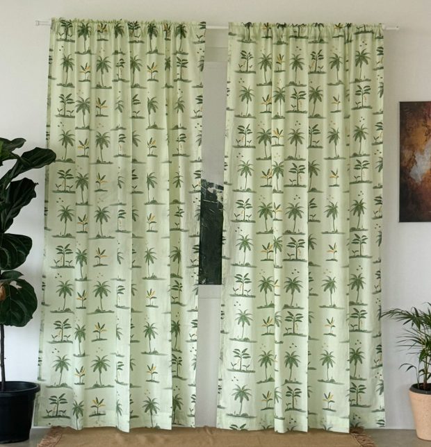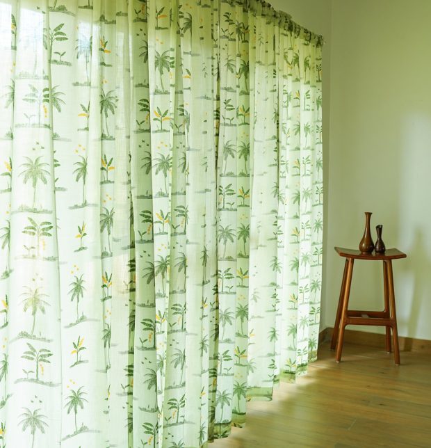 Nirvaanya Slub Sheer Cotton Curtain – Coconut tree – Seaform Green